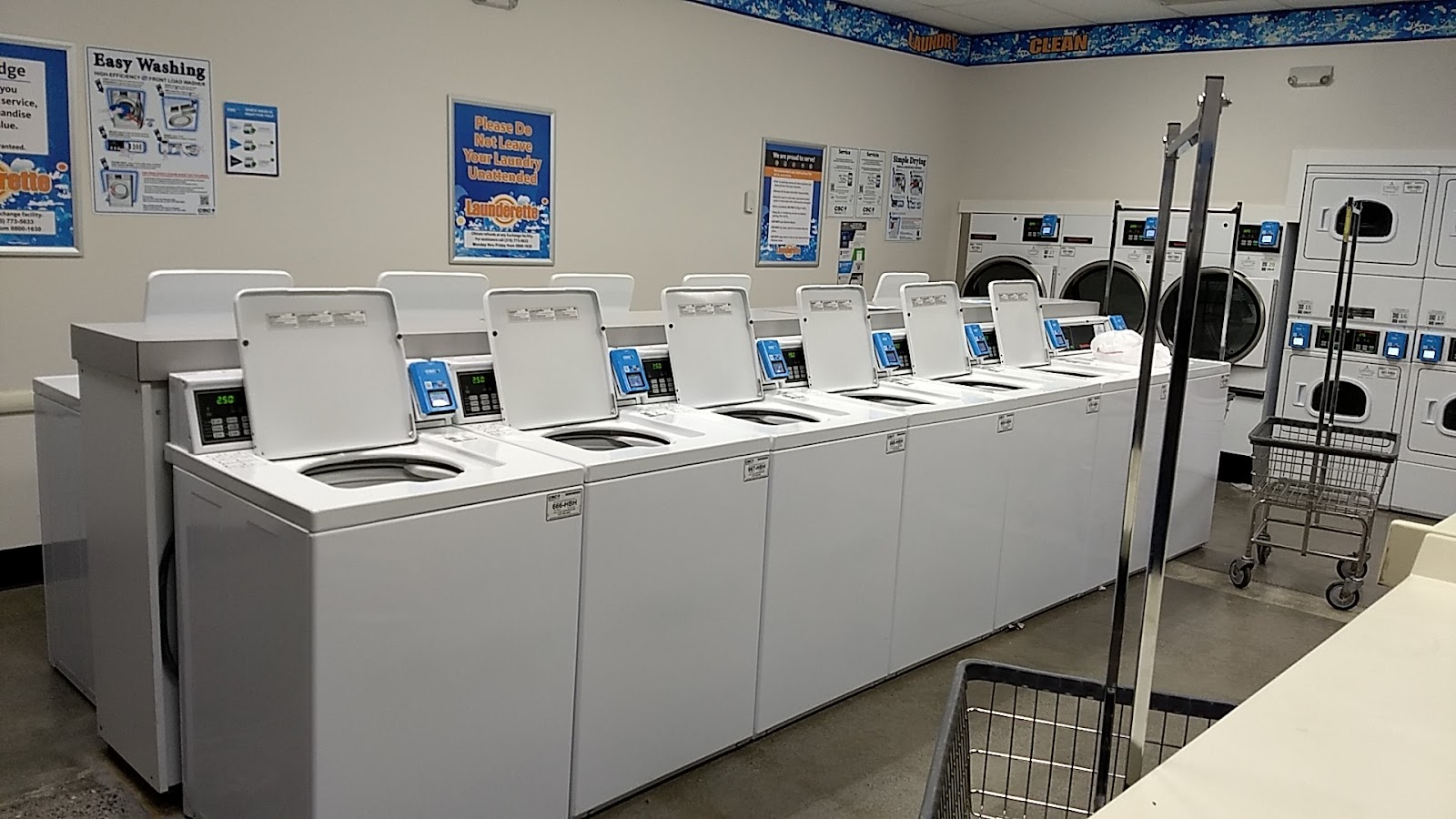 Welcome to Launderette, your go-to destination for all your laundry needs! Our convenient location is open 24 hours a day, 7 days a week, ensuring you can do your laundry at a time that suits you. Our facility is clean, well-maintained, and wheelchair accessible, providing a comfortable experience for all our customers. We've made paying for your laundry easy and convenient, with the option to use your credit/debit card or the CSCPay Mobile App - no need to worry about carrying quarters! Our large capacity washers and dryers are perfect for big or small loads, and our friendly atmosphere makes doing laundry a breeze.