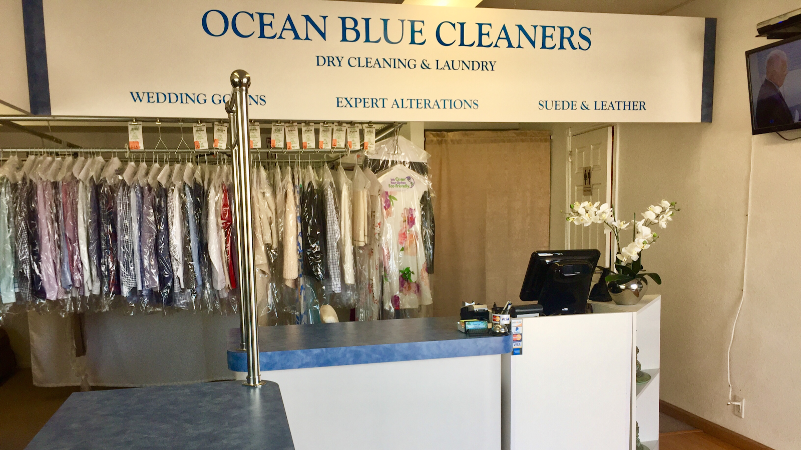 Experience the best in laundry and dry cleaning services at Ocean Blue Cleaners. With a 4.9-star rating and a reputation for consistent, high-quality service, you can trust us to take care of your clothing needs. Our friendly and helpful staff, including owners Janett and Rosa, are dedicated to providing a quick, easy, and professional experience. From delicate articles to tough stains, we've got you covered. Our brand new, wheelchair-accessible facility is clean, modern, and welcoming, making it the perfect place to take care of all your laundry and dry cleaning needs.